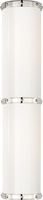Podwójny kinkiet Bleeker w kolorze polerowanego niklu z białym szkłem. Wykończenie: Polished Nickel, Szerokość: 13.3cm, Wysokość: 59.1cm, Klosz: N/A, Gniazdo: Dedicated LED, Moc: 12w (1000lm), Kształt żarówki: N/A, Waga: 5.4 kg, IP Rating: IP20 Class I