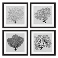 Udekoruj swój dom tym wspaniałym 4-częściowym zestawem Shadow Sea Fan Prints autorstwa amerykańskiej artystki Grace Popp.