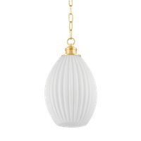 Hillary oddaje urok domku letniskowego, który urzeka świat designu. Pojedyncza lampa wisząca, dostępna w kolorze postarzanego mosiądzu, posiada karbowany szklany klosz zwisający elegancko z łańcucha. Oszałamiająca sama w sobie, ta antyczna ukochana lepiej
