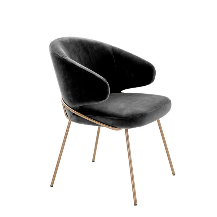 Krzesło do jadalni Kinley to stylowe krzesło do jadalni Kinley. Z wygiętym oparciem i siedziskiem w szarej aksamitnej tapicerce Savona i szczotkowanymi mosiężnymi nogami, ten przyciągający wzrok fotel emanuje nowoczesnym stylem z połowy wieku. W. 60 | D. 64 | H. 81 | SD. 46 | SH. 49 | AH. 66 cm, W. 23.62″ | D. 25.20″ | H. 31.89″ | SD. 18.11″ | SH. 19.29″ | AH. 25.98″, W. 60 | D. 64 | H. 81 | SD. 46 | SH. 49 | AH. 66 cm, W. 23.62″ | D. 25.20″ | H. 31.89″ | SD. 18.11″ | SH. 19.29″ | AH. 25.98″