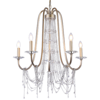 Materiał Kryształ|Metal|Szkło Kolor Matowy Cukier|Transparentny|Złoto Wysokość Całkowita (mm) 145.0 Klasa Szczelności IP 20 Szerokość (mm) 550 Źródło światła 6xE14 max 12W LED 230V|Brak Źródła Światła w Komplecie