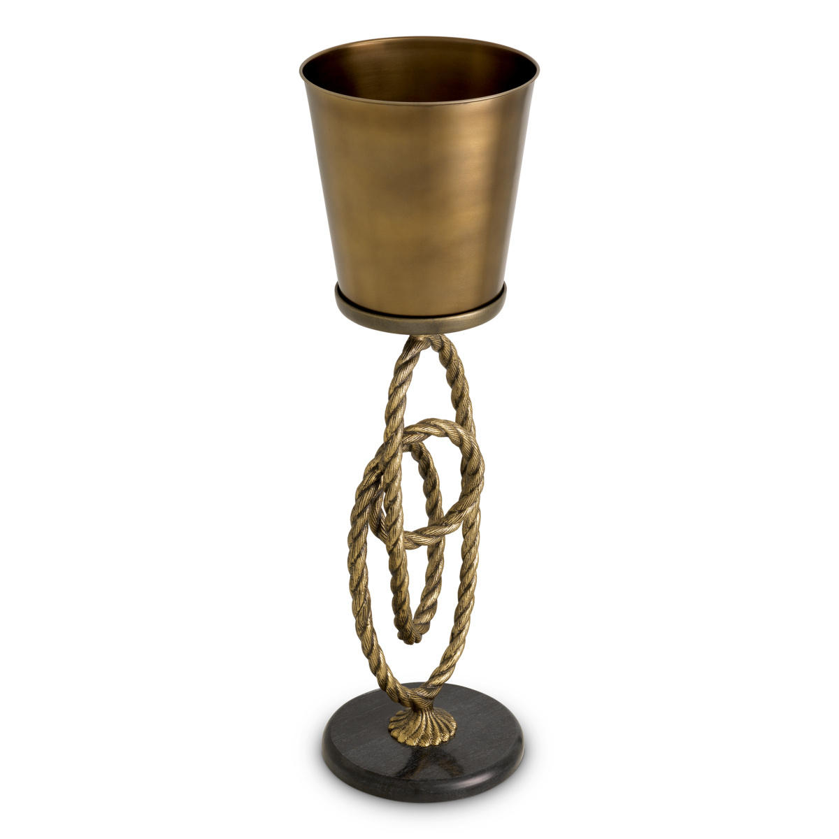 Dodaj chłodziarkę na wino Corwyn marki Eichholtz do swojej kolekcji akcesoriów, aby uzyskać dekoracyjny efekt. Dodaj chłodziarkę na wino Corwyn marki Eichholtz do swojej kolekcji akcesoriów, aby uzyskać dekoracyjny efekt. Ten wyjątkowy model, będący częścią naszej ekskluzywnej serii Corwyn, charakteryzuje się ręcznie odlewanym wzorem liny i wykończeniem w kolorze starego mosiądzu w odcieniu złota. Granitowa podstawa dodaje naturalnego piękna i trwałości, tworząc mebel, który przetrwa wiele dekad. Wysoki model Eichholtz posiada wyjmowane wiaderko, ułatwiające transport.