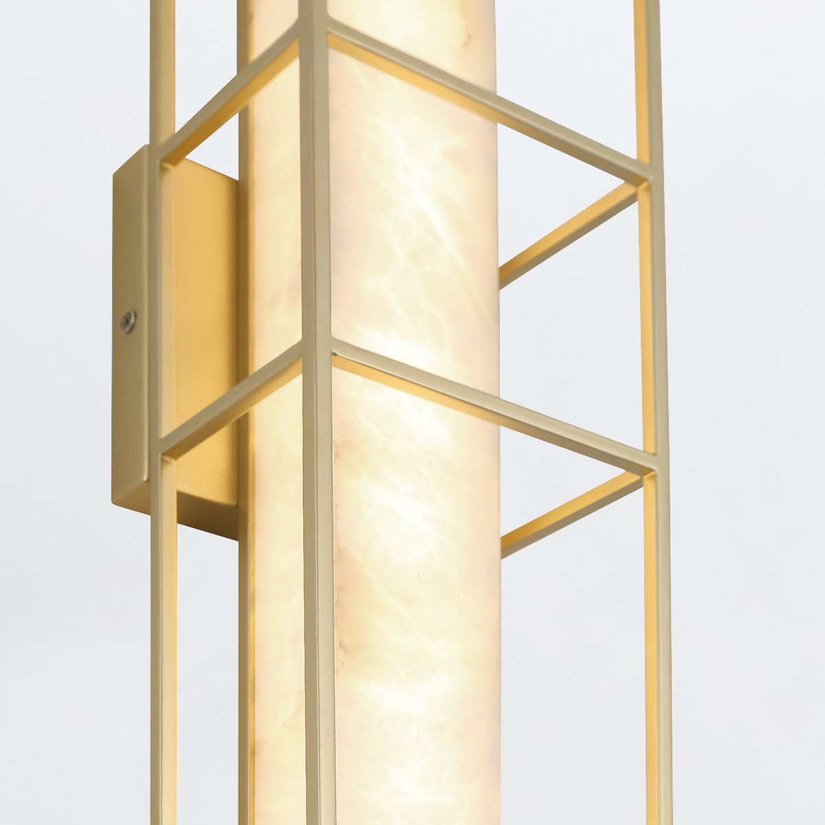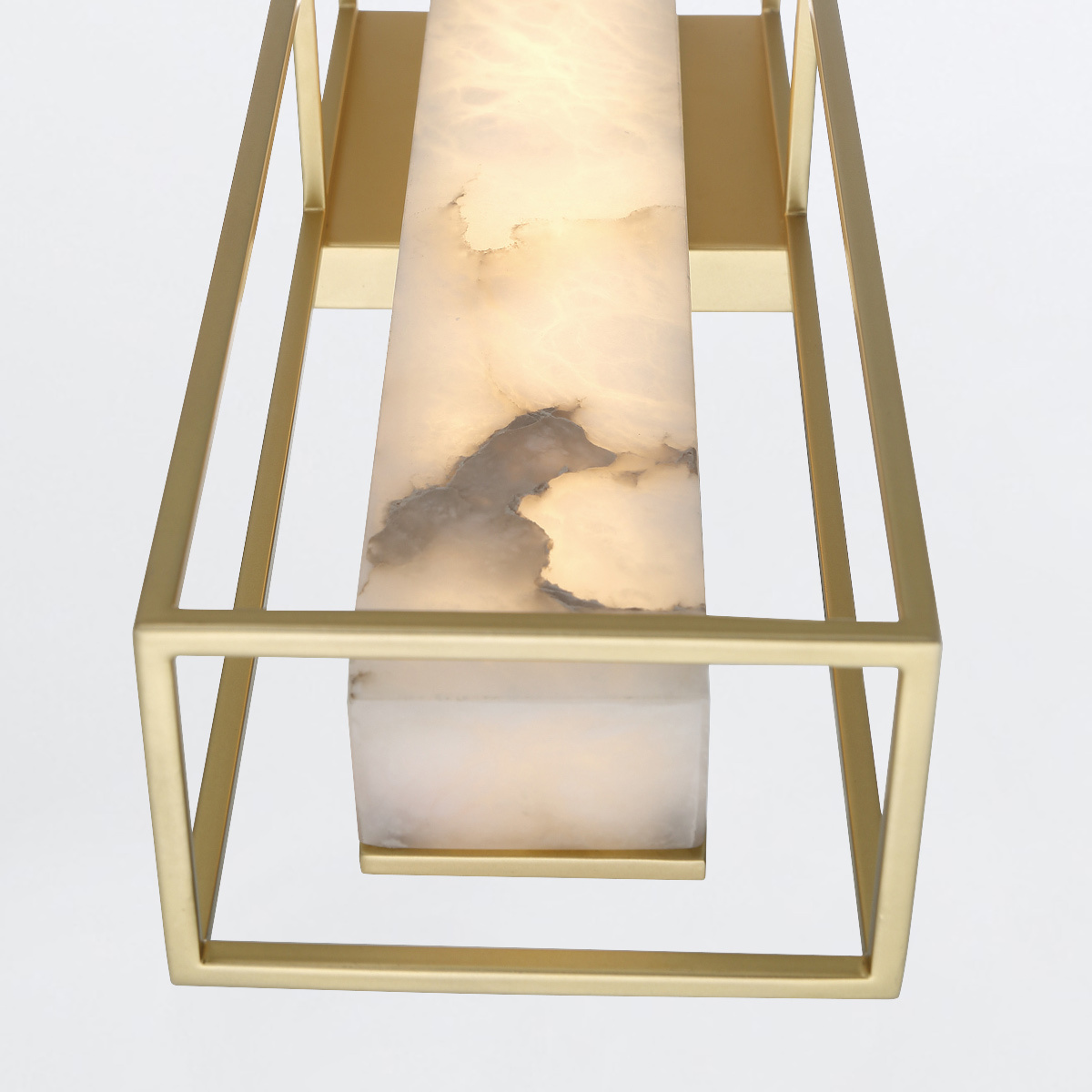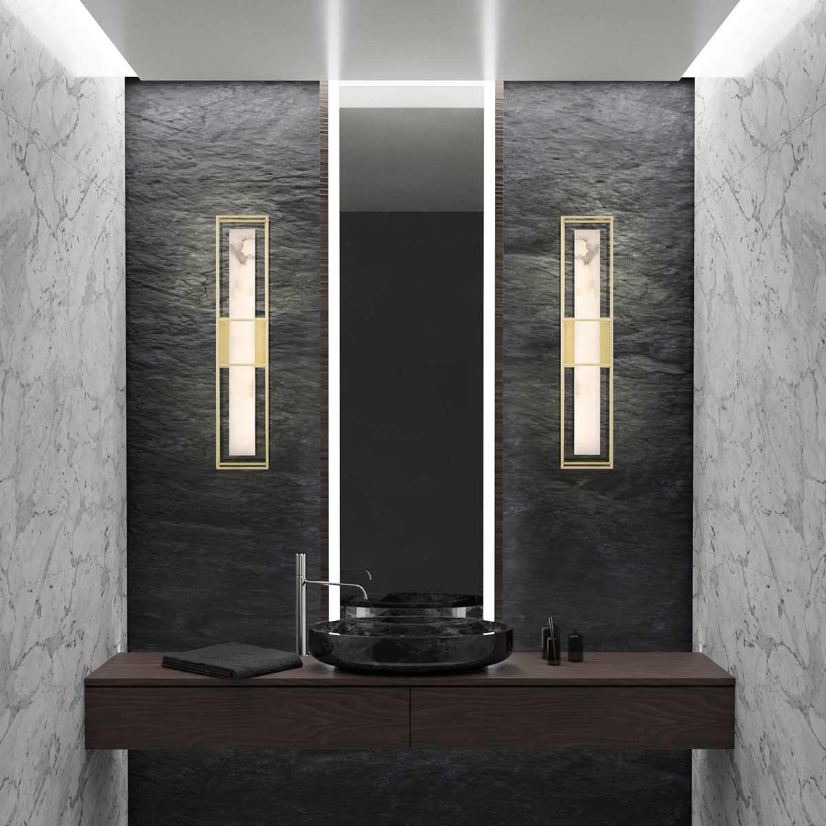 - W tym wyjątkowym projekcie połączono elementy organiczne i przemysłowe. Miękkość jednego kawałka ręcznie rzeźbionego alabastru otoczona metalową ramą, symbolizuje yin i yang w designie.