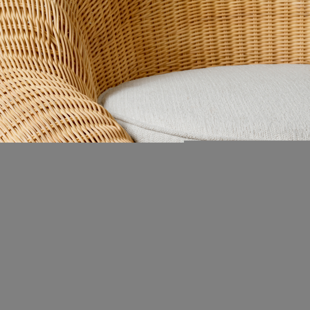 • Fotel wypoczynkowy Shell Lounge, będący ucieleśnieniem wyrafinowanego relaksu, łączy w sobie naturalny rattan z tkaniną w kolorze spokojnego beżu Saville.