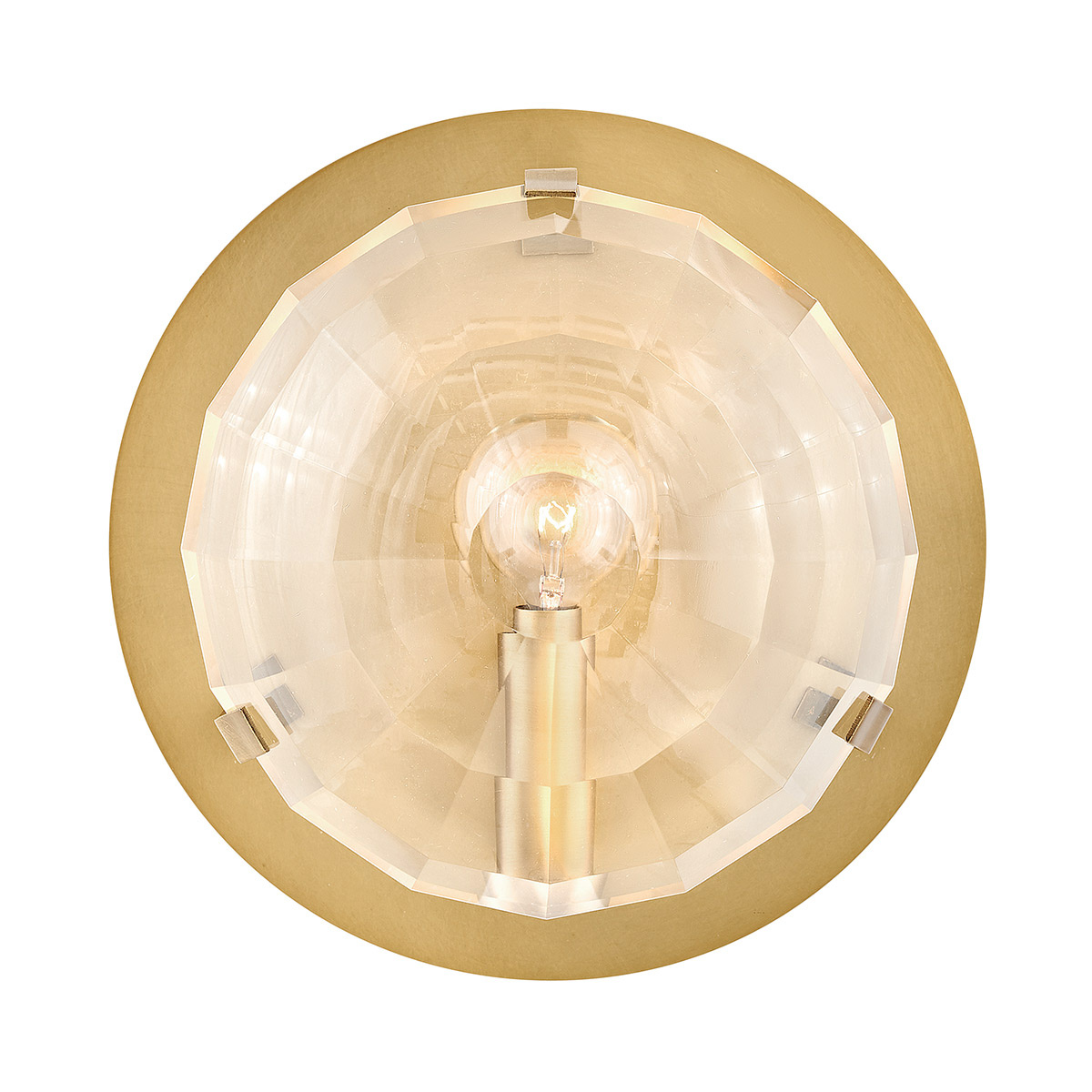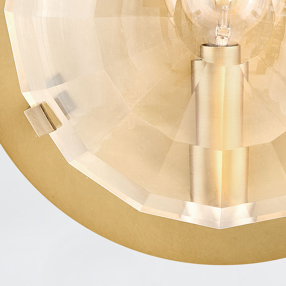- Kinkiet Leo z 1 źródłem światła w wykończeniu klasycznego mosiądzu to nowoczesna propozycja o wyjątkowo dekoracyjnym charakterze. Okrągła oprawa skrywa wyrazisty, fasetowany klosz z ciętego szkła kryształowego, który subtelnie rozprasza światło i przyciąg