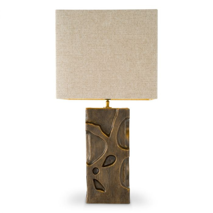 - Podnieś swoją przestrzeń dzięki lampie stołowej Enzo, w której artyzm łączy się z bogactwem. Mosiężne wykończenie w stylu vintage i teksturowany design nadają jej wyrafinowania, a lniany klosz zapewnia miękką, zachęcającą poświatę. Lampa ta zapowiada się