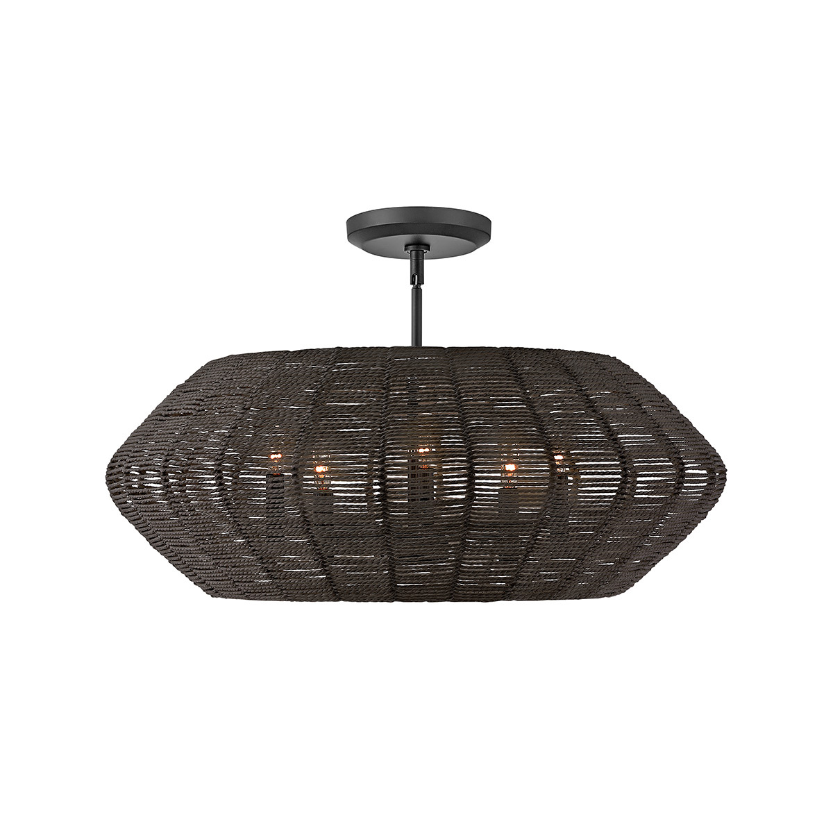 - Lampa wisząca Luca z 5 źródłami światła w wykończeniu czarnym to mniejsza, ale równie wyrazista wersja tej designerskiej kolekcji. Czarny stelaż uzupełnia ciemna plecionka tworząca zwartą, teksturowaną bryłę. Lampa efektownie komponuje się w parach nad st