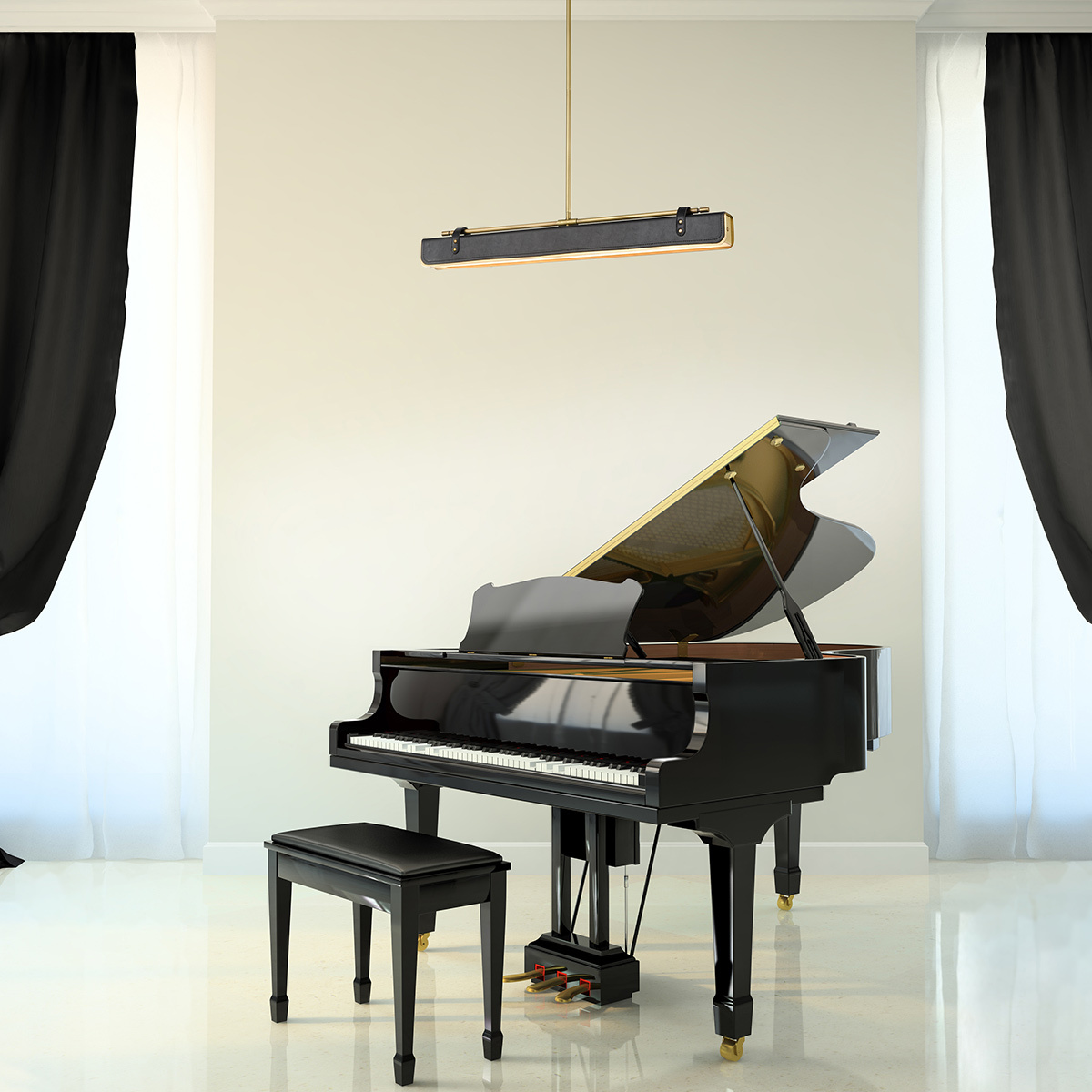 Lampa wyspowa LED Valise - Vintage mosiądz, skóra smokingowa