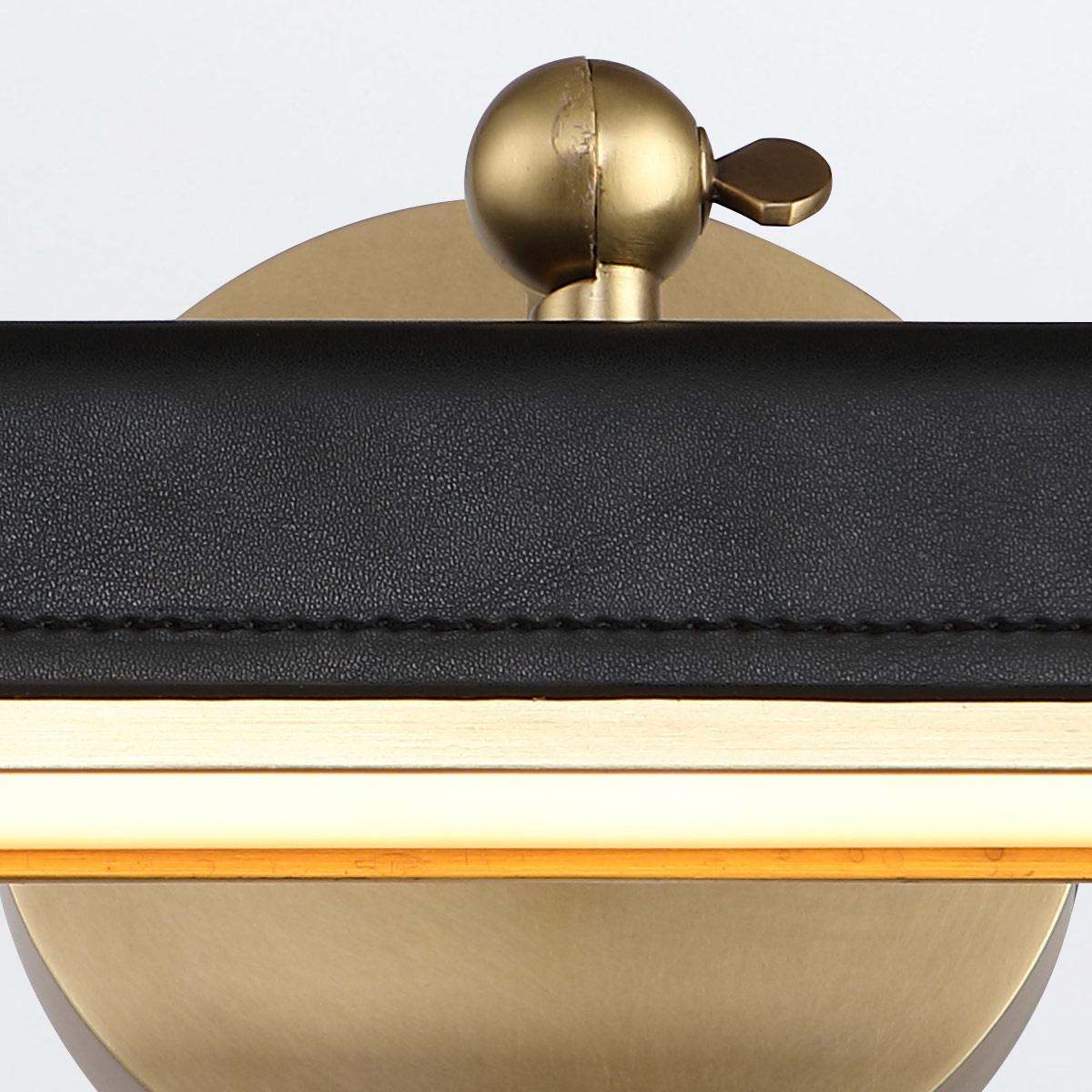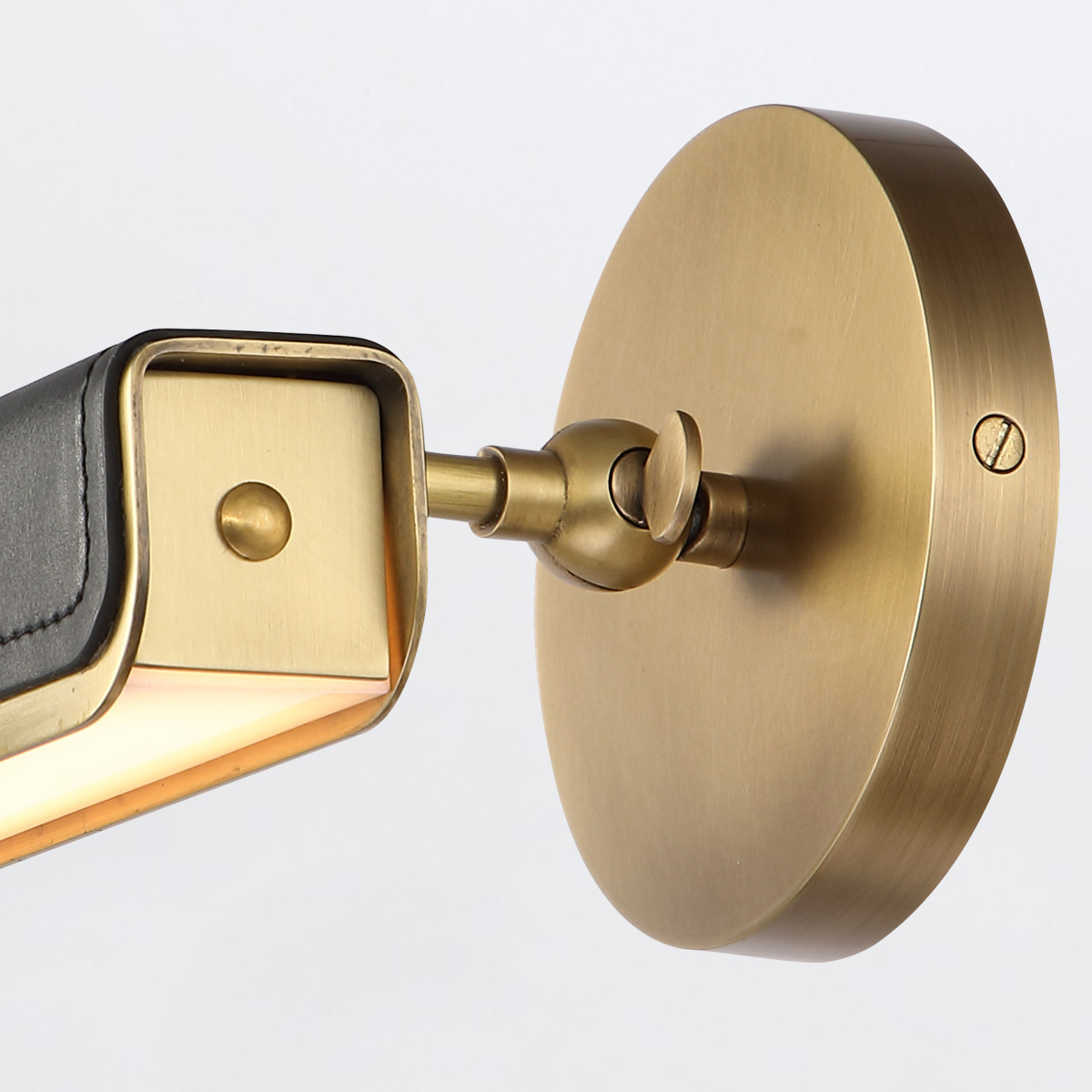 - Smukła i kompaktowa oprawa ścienna LED Valise w wersji small, wykończona skórą smokingową i metalem w odcieniu vintage mosiądz, to subtelny, a zarazem efektowny element aranżacji. Świetnie prezentuje się nad pojedynczym obrazem lub na ścianie galerii.