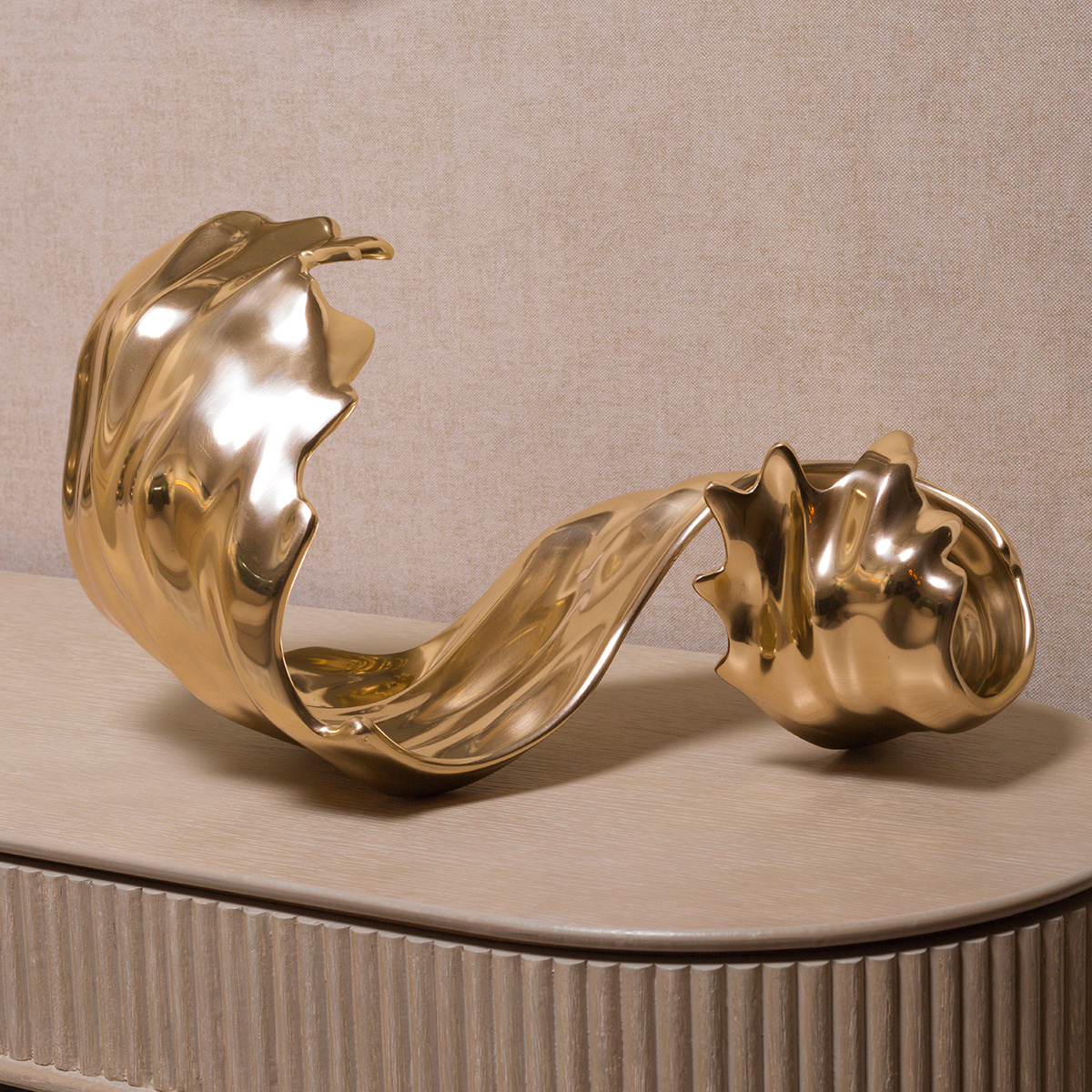 Rozkoszuj się przepychem Fairleigh Object firmy Eichholtz, wykwintnym elementem dekoracyjnym każdej luksusowej przestrzeni.Rozkoszuj się przepychem Fairleigh Object firmy Eichholtz, wykwintnym elementem dekoracyjnym każdej luksusowej przestrzeni.Misternie wykonany z metalu ze złotym wykończeniem, ten przyciągający wzrok dodatek do domu Eichholtz został zaprojektowany, aby budzić podziw. Unikalny, falisty kształt czerpie inspirację z natury, dodając Twojej kolekcji akcesoriów wyrafinowanego charakteru.