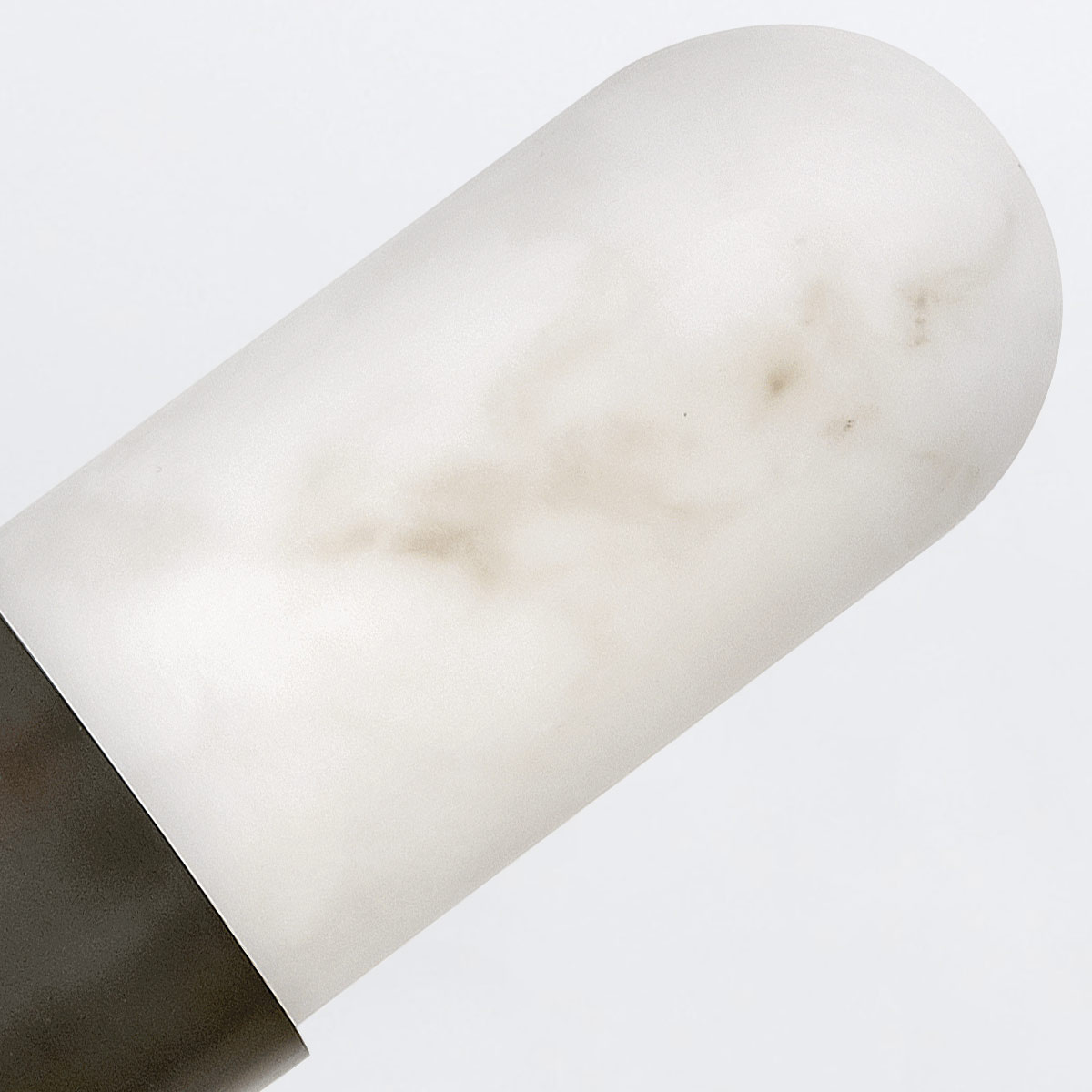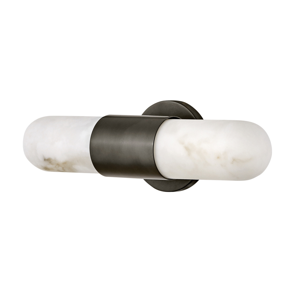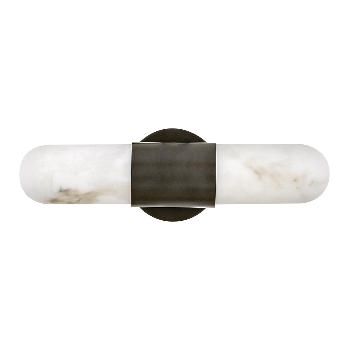 - Kinkiet Ibiza w średnim rozmiarze z 1 zintegrowanym modułem LED w wykończeniu oksydowana czerń to mniejsza wersja dekoracyjnej lampy ściennej o eleganckiej, wydłużonej sylwetce. Klosz z mlecznego szkła imitującego alabaster harmonijnie współgra z kontrast