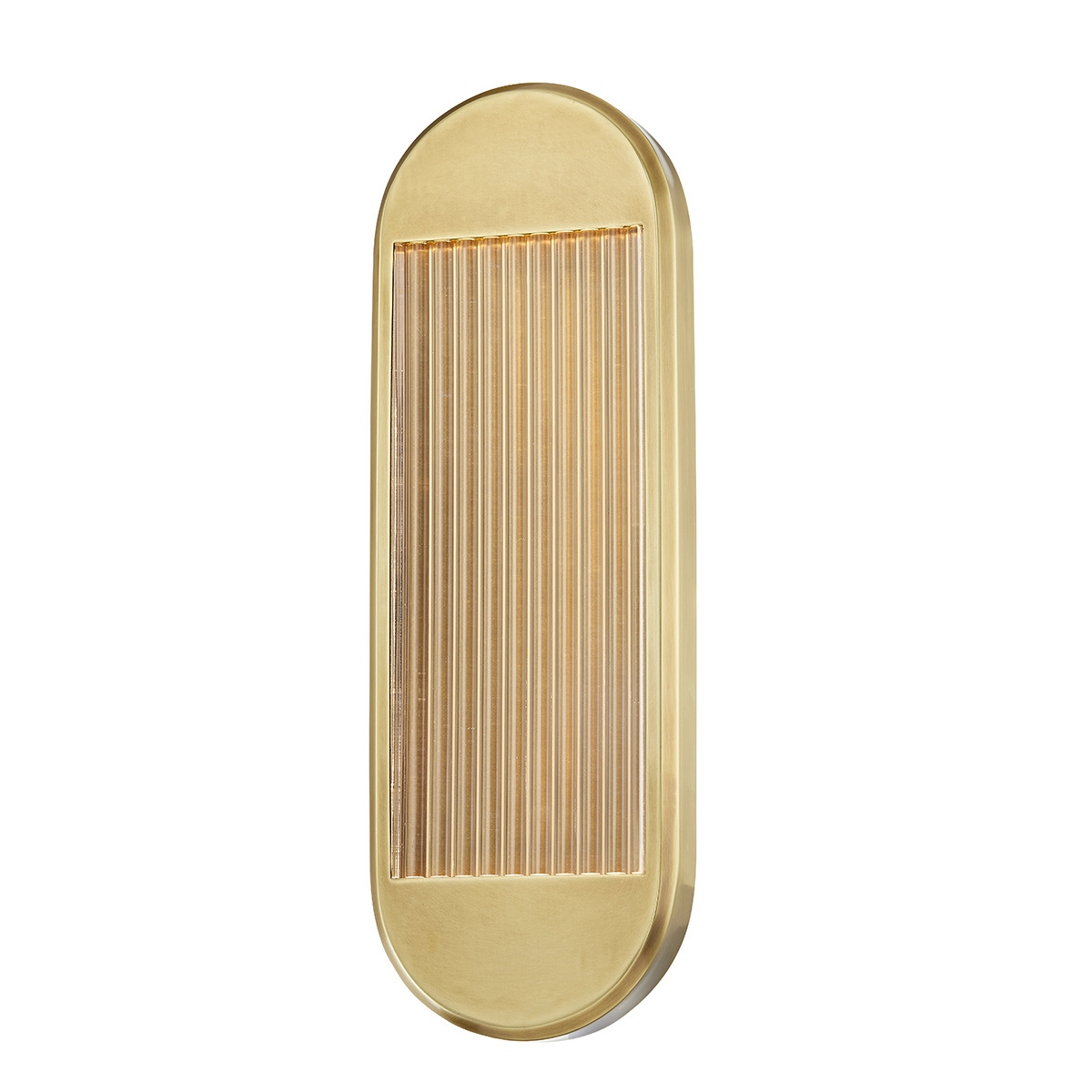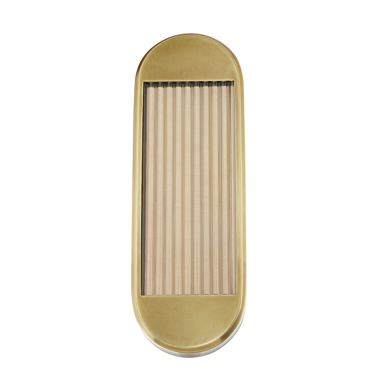 - Kinkiet LED Palais w rozmiarze średnim w wykończeniu vintage mosiądz przyciąga wzrok wyważonym połączeniem elegancji i funkcjonalności. Luksusowe szkło z pionowym ryflowaniem zamknięto w zaokrąglonej, stalowej ramie. Model inspirowany estetyką lat 20. spr