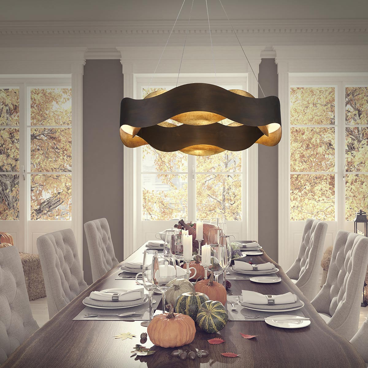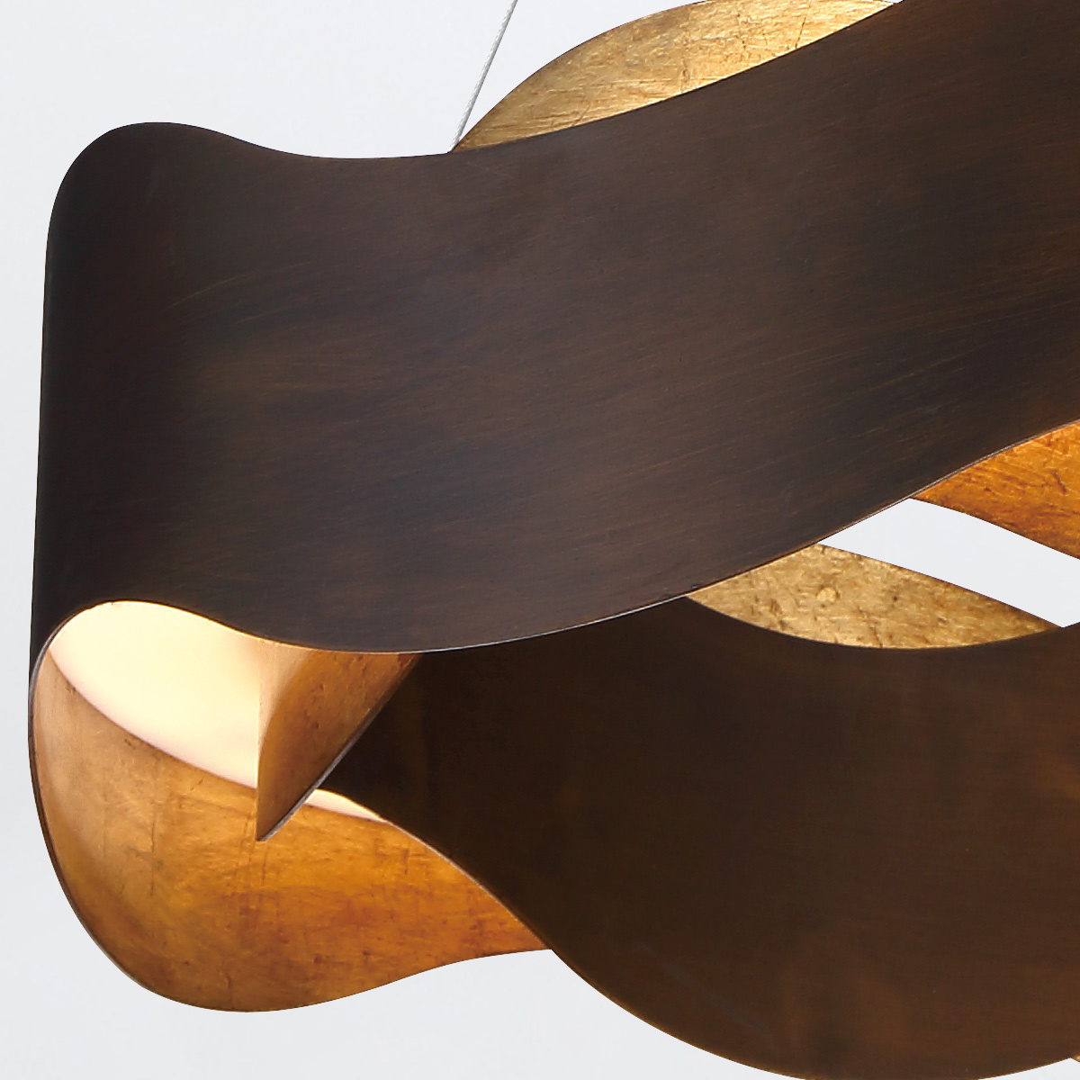 - Delikatnie falujące kształty tworzą spokojne i kojące otoczenie. Taki sam efekt odprężenia zapewnia ciche, pośrednie oświetlenie, które łączy dwie kontrastujące formy fal w tej kolekcji intrygujących i unikalnych elementów oświetleniowych.