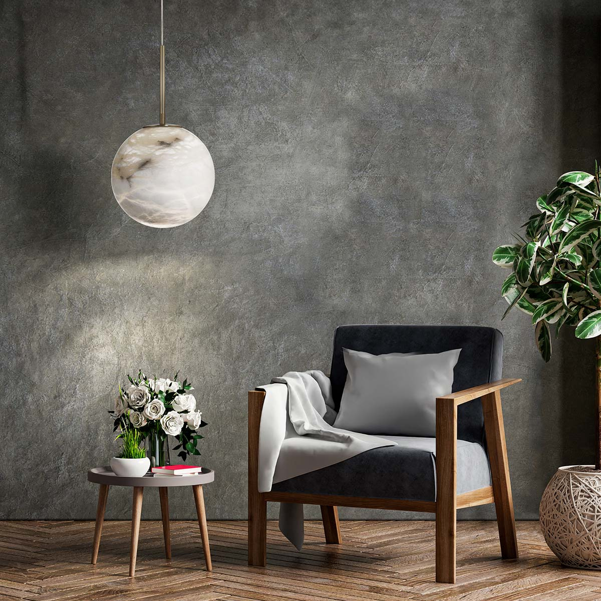 • Solidne bloki alabastrowego kamienia zostały wydrążone i uformowane w kule, a naturalne złoża tlenków żelaza w miękkim kalcycie tworzą unikalne smugi i żyłkowanie. W rezultacie każdy klosz staje się wyjątkowym dziełem, które zachwyca swoją niepowtarzalnoś