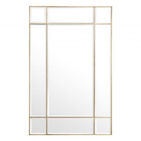 Lustro Beaumont w kształcie okna z fazowanym lustrzanym szkłem i ramą z mosiężnym wykończeniem w stylu vintage.