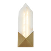 Mały kinkiet z kolekcji Caesar wyróżnia się kontrastem między szlachetną prostotą alabastru a metalową podstawą w wykończeniu vintage mosiądz. Rzeźbiarska forma oprawy, inspirowana strukturą kamieni szlachetnych, doskonale sprawdzi się zarówno solo, jak i