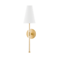 Stożkowe świeczniki z białego lnu są delikatnie utrzymywane w miejscu między parą poziomych ramion, przenosząc prostą, rozpoznawalną sylwetkę River na wyższy poziom. Młotkowana metalowa konstrukcja Vintage Gold Leaf dodaje ruchu i nadaje temu jednopłomien