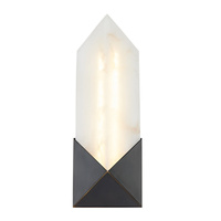 Kinkiet z 1 źródłem światła z kolekcji Caesar to minimalistyczna, a zarazem luksusowa forma. Geometryczny klosz z alabastru osadzony został na metalowej podstawie w kształcie trójkąta, wykończonej w kolorze miejski brąz. Nawiązując do formy kryształu lub