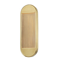 Mały kinkiet Palais ze zintegrowanym źródłem światła LED to hołd dla dekoracyjnych form z epoki art déco. Półokrągła oprawa wykonana ze stali w wykończeniu vintage mosiądz w połączeniu z żebrowanym szkłem tworzy wyrafinowaną całość, która doskonale sprawd