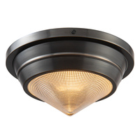 Plafon Willard z 1 źródłem światła w wykończeniu miejski brąz wyróżnia się kompaktową formą i eleganckim detalem. Pryzmatyczny klosz o delikatnej strukturze załamuje światło, tworząc subtelny efekt wizualny, który podkreśla charakter wnętrz.