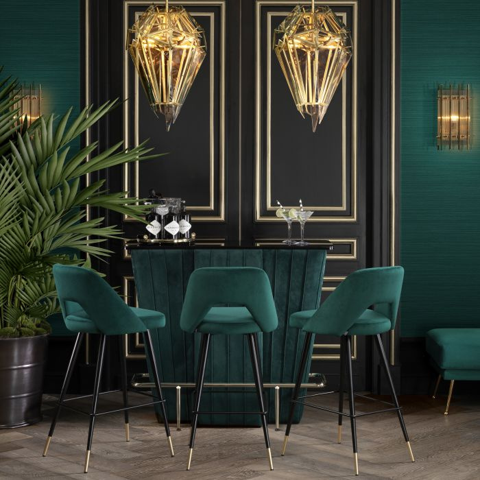 Stołek barowy Avorio wprowadzi do Twojego domu nowoczesny styl z połowy ubiegłego wieku. Tapicerowane zielonym aksamitem siedzisko Roche z oparciem zapinanym na guziki i czarne zwężane nogi z mosiężnymi nakładkami, ten mebel w stylu vintage nada Twojemu wystrojowi wygląd retro. W. 50 | D. 50 | H. 100 | SD. 43 | SH. 75 cm, W. 19.69″ | D. 19.69″ | H. 39.37″ | SD. 16.93″ | SH. 29.53″, W. 50 | D. 50 | H. 100 | SD. 43 | SH. 75 cm, W. 19.69″ | D. 19.69″ | H. 39.37″ | SD. 16.93″ | SH. 29.53″